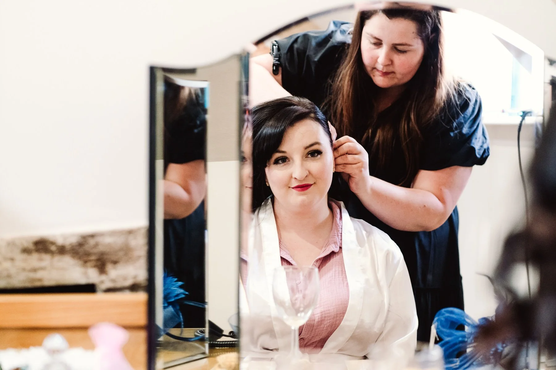 We managed to dodge a few showers (thanks Summer 2023) and ran in and out every time it stopped/started/stopped/started again. How she managed in those shoes I’ll never know* Thanks to them being a big ol’ bunch of legends, we cracked on with the important business of having a perfect wedding day. Lovely to see some familiar faces, like ace face-decorator Michelle G as well as Morgan and Tayla from off of their epic wedding back in 2021!